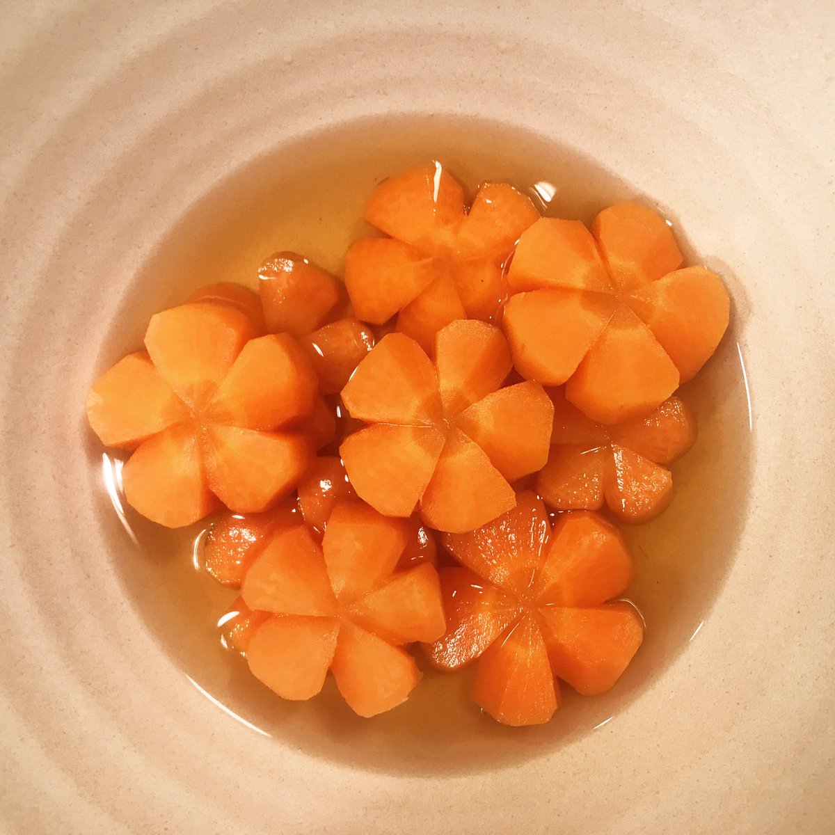 にんじんの飾り切り「ねじり梅」toiro note 〜トイロノート〜 家族が笑顔になる、いつものごはんを彩るレシピサイト。