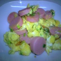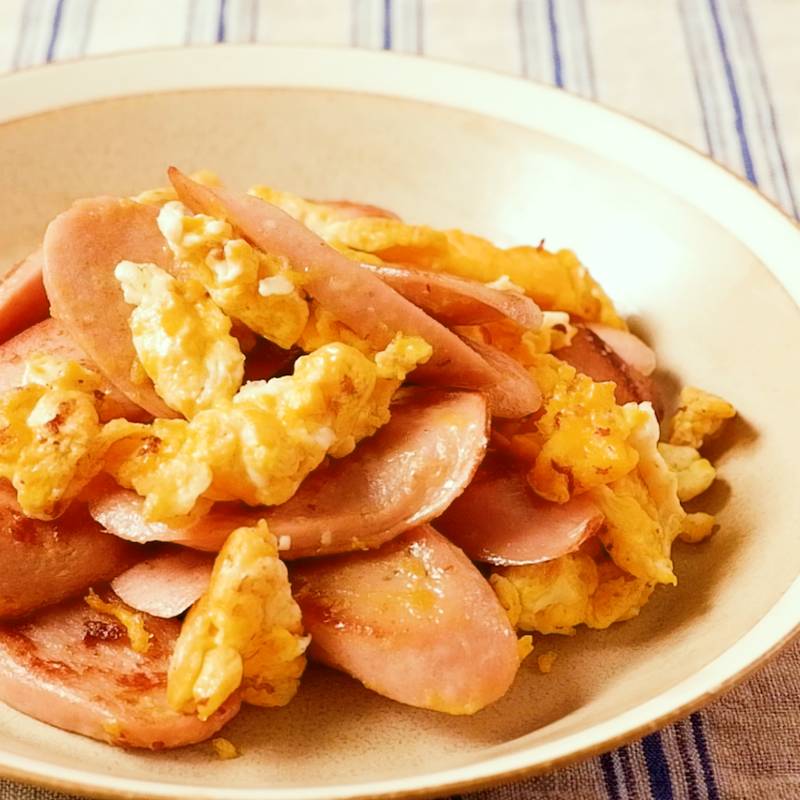 超簡単魚肉ソーセージとスクランブルエッグレシピ。