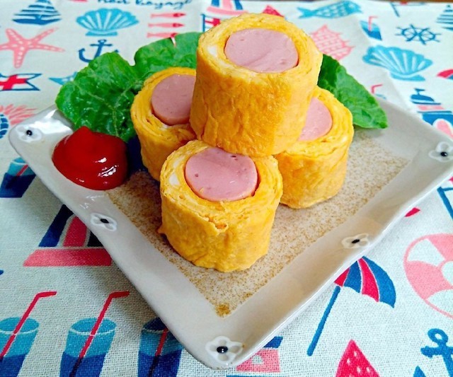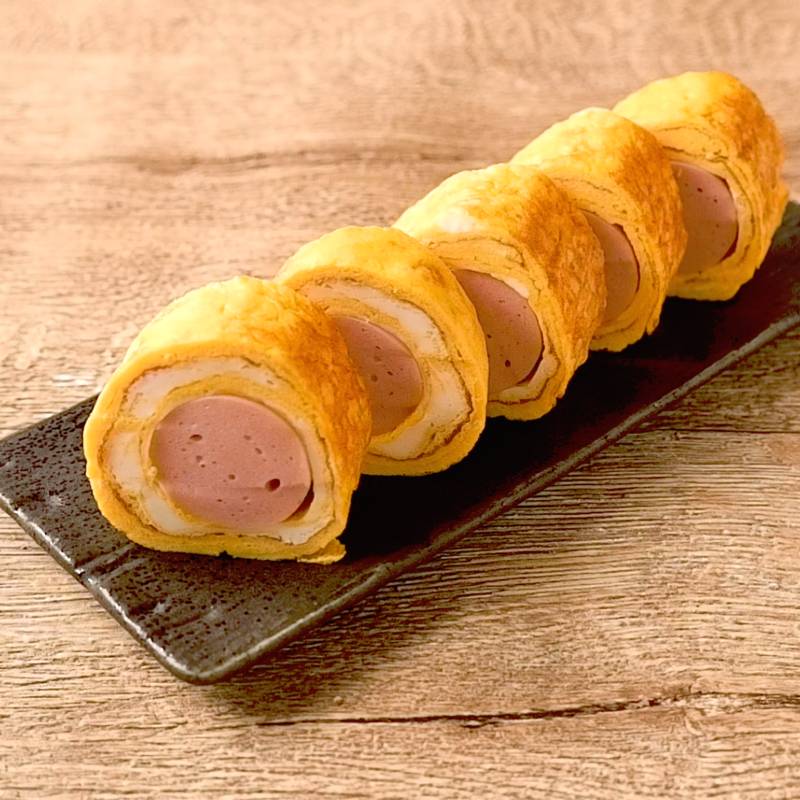 お弁当のおかずに♪ 魚肉ソーセージのロール卵焼き。