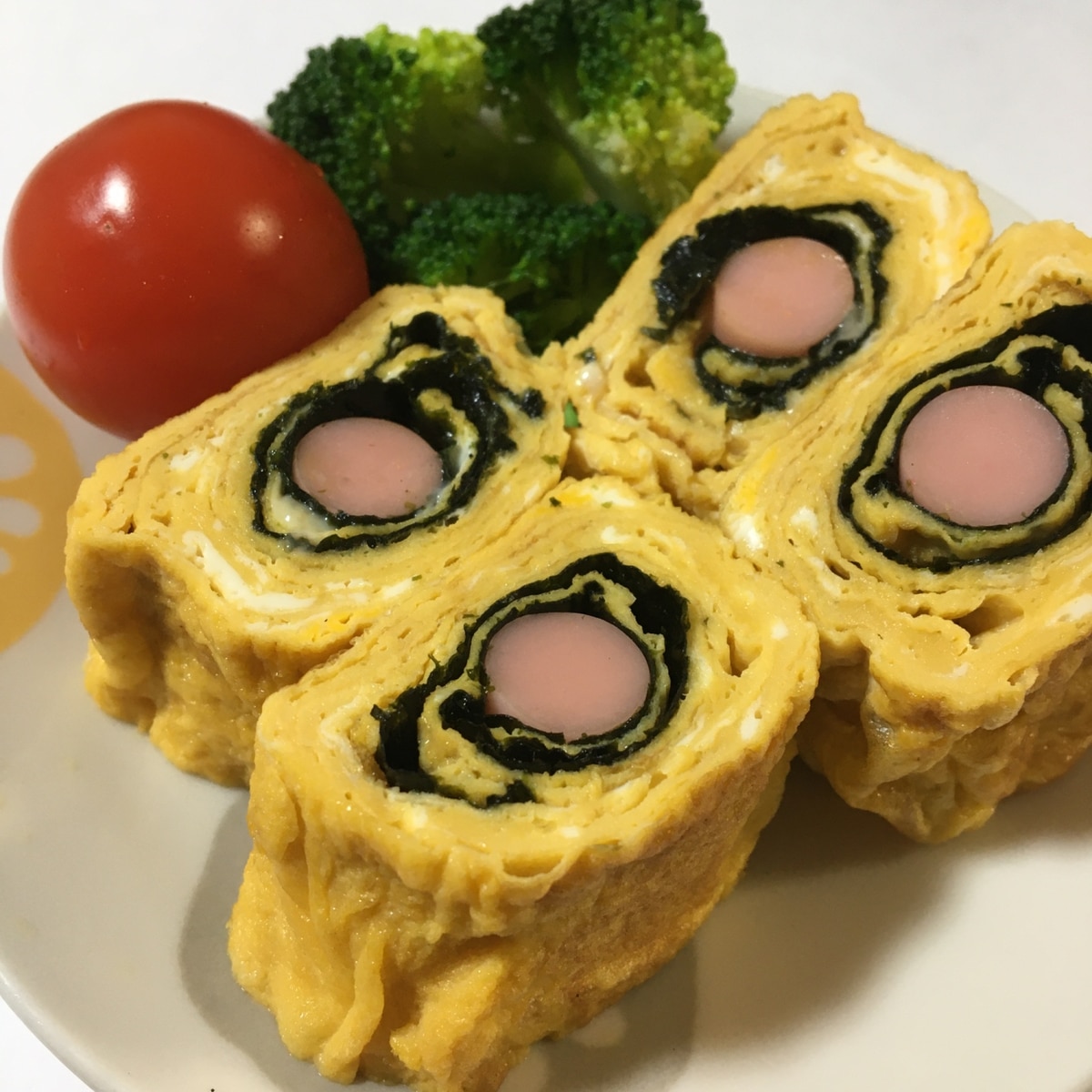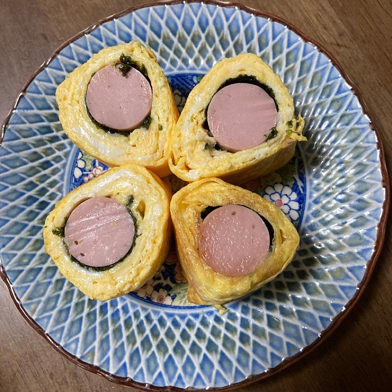 お弁当にもぴったり! 魚肉ソーセージと青のりの卵焼き。