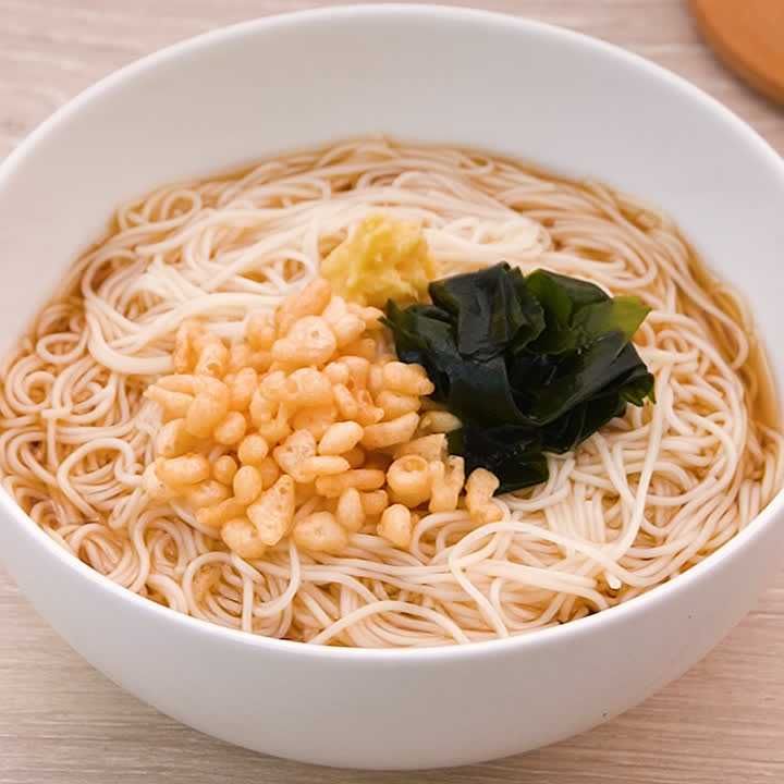 めんつゆで作る! 簡単たぬきそうめん。
