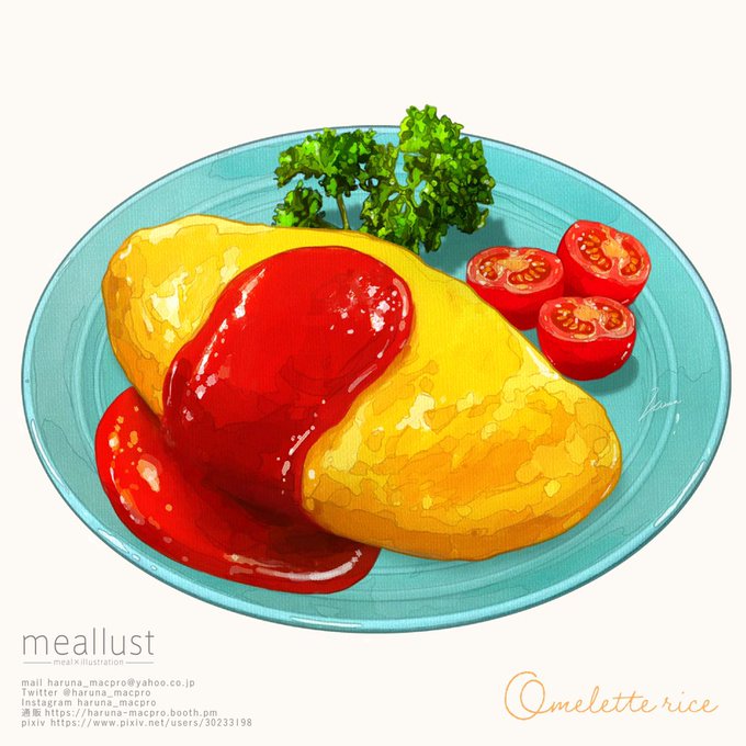 Omelette rice食べ物イラスト 」晴菜のイラスト。