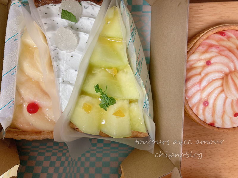 メロンと桃、チョコミントタルト @大阪梅田グランフロント・キルフェボンchip no blog。