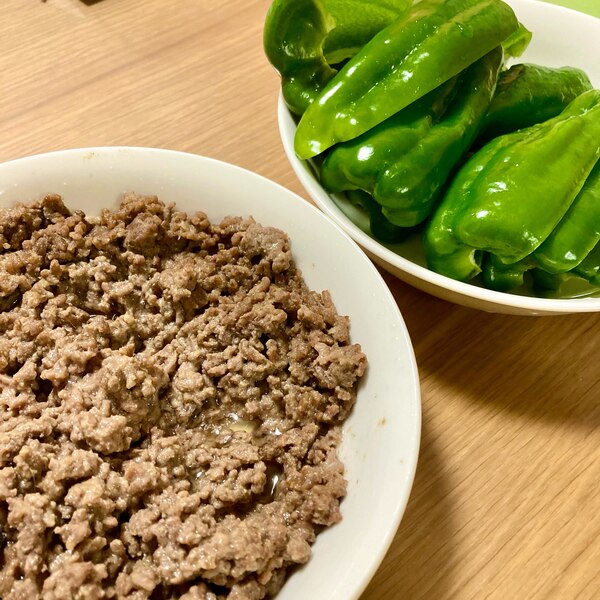 お手軽肉味噌 えぐみを取った生ピーマンと!しょりんのお仕度。