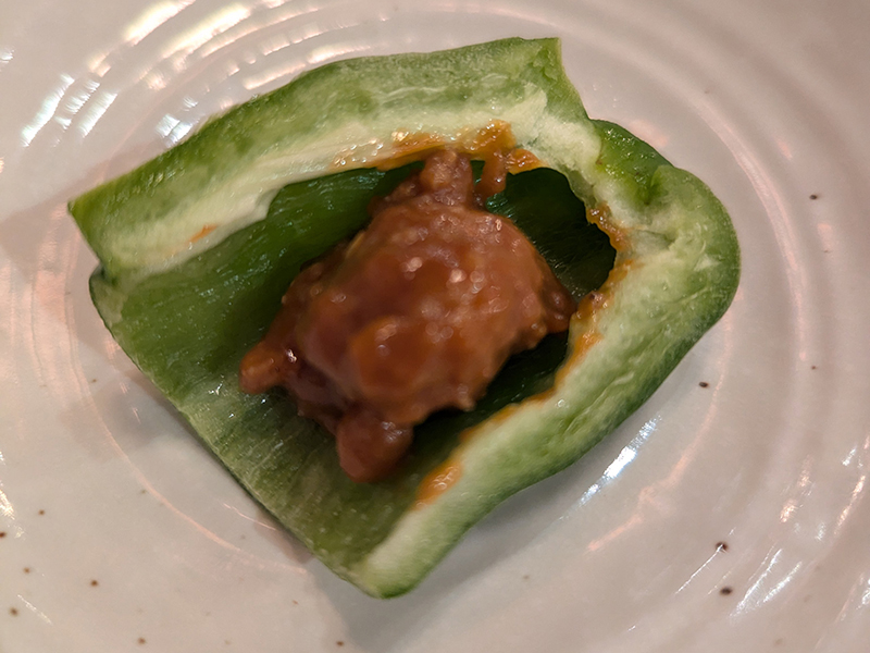 おつまみのご紹介 ◇肉味噌ピーマン◇ 2022.05.23神楽坂 和情緒な古民家居酒屋カド。