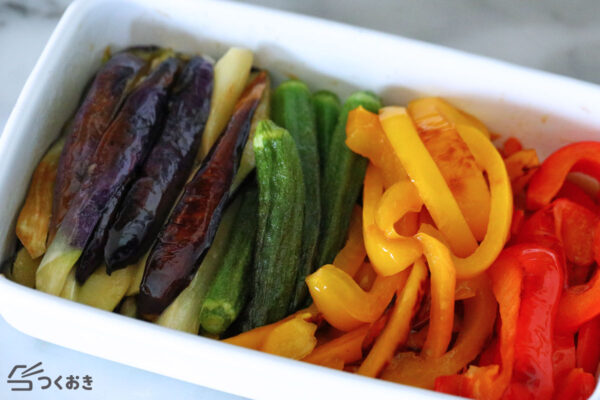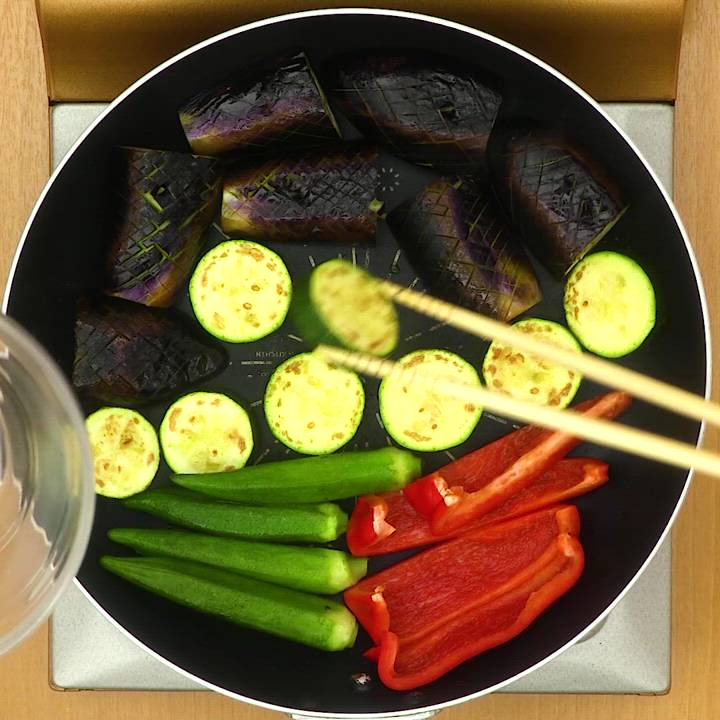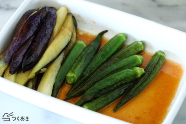 夏野菜の焼き浸しを簡単に作るレシピ。