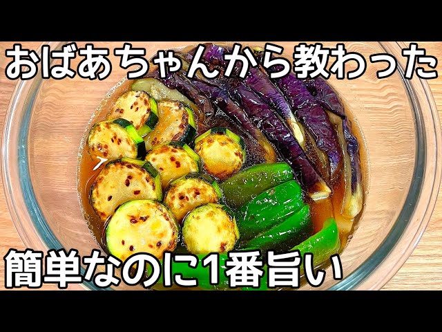 焼いて漬けるだけ 夏野菜の焼き浸し めんつゆで簡単!お酢のさっぱりと生姜の風味に夏野菜の甘みが病みつき!節約おかず - YouTube。