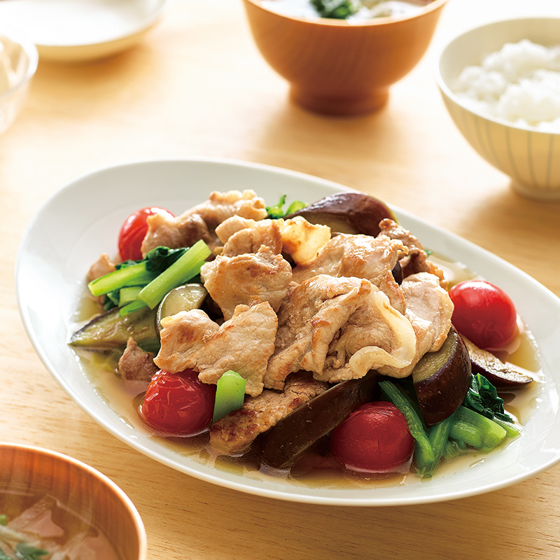 夏野菜と豚肉のさっぱり浸し白だし16倍レシピ七福醸造株式会社。