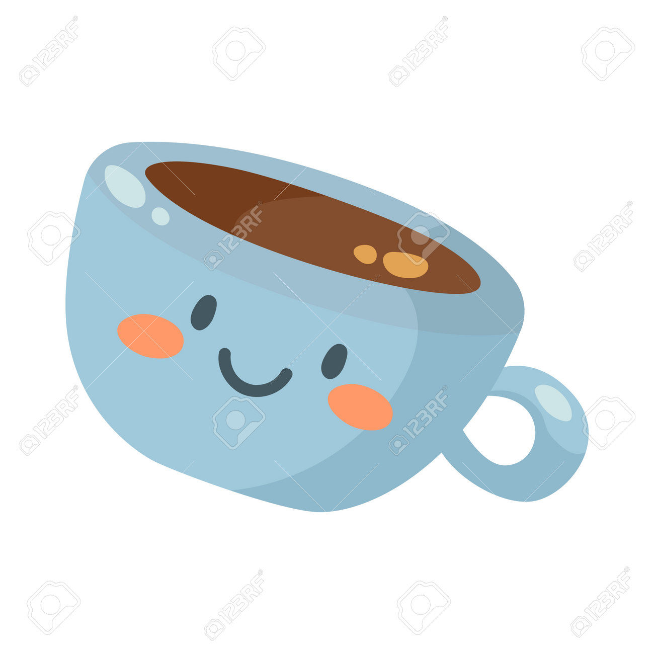 笑顔のイラストとおかしなコーヒーや紅茶。かわいいカップキャラクター。一杯のコーヒーまたは紅茶。食事、朝のルーチンのコンセプトのイラスト素材・ベクターImage 193964678。