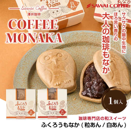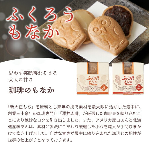 スイーツ :: その他スイーツ :: まだ間に合う 遅れてごめんね コーヒー専門店の和スイーツ ふくろうもなか 1個 和菓子 珈琲入り 最中 フクロウ白あん モナカ 粒あん サクサク 和スイーツ ※冷凍便不可 コーヒーに合う 珈琲のお供 プチギフト お年寄り 澤井スイーツ 内祝い。