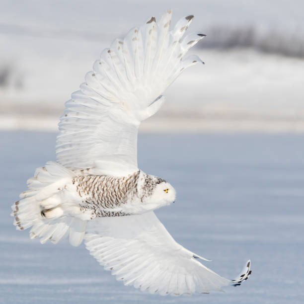 シロフクロウ横痃 Scandiacus飛行中の鳥 - シロフクロウのストックフォトや画像を多数ご用意 - シロフクロウ, カナダ, クローズアップ -iStock。
