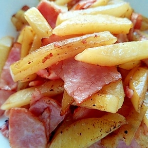 揚げジャガイモとベーコン ハム のソテーレシピ- 藤沢市立大道小学校。