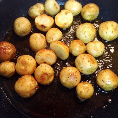 少量油、フライパンでつくる 新じゃがのフライドポテト。