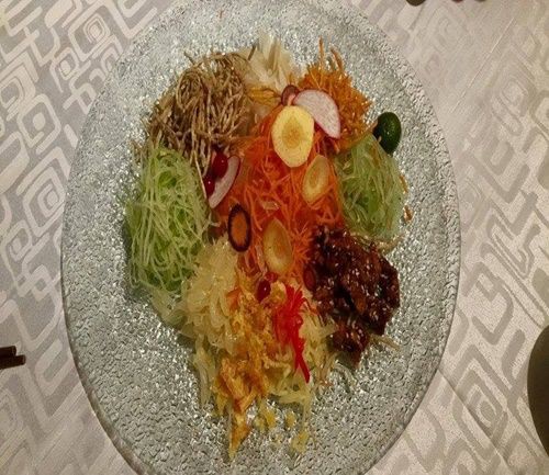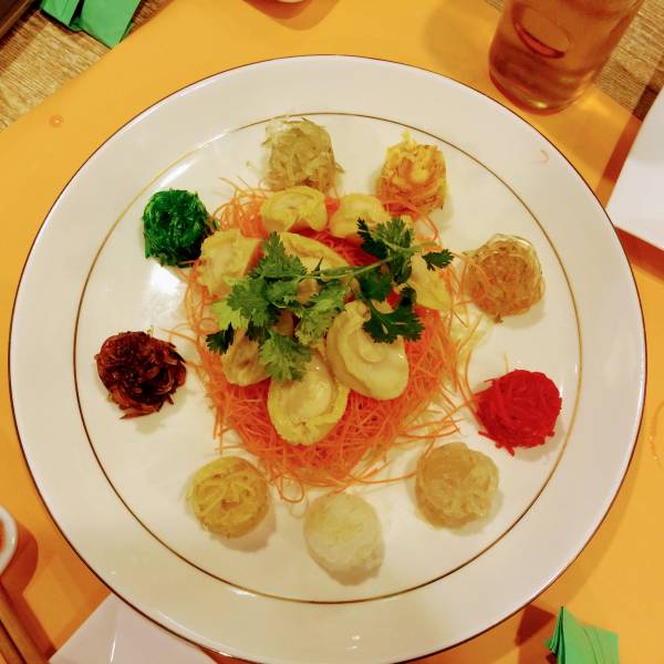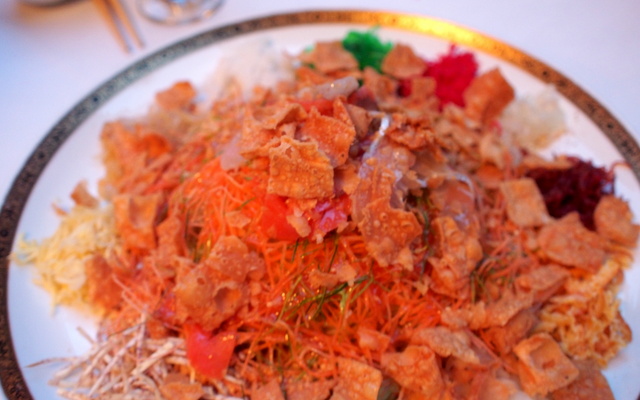 もうすぐ旧正月!特製の手打ちそば入り豪華絢爛 YuSheng ユーシャン 魚生! 新ばしシンガポールお役立ちグルメ。
