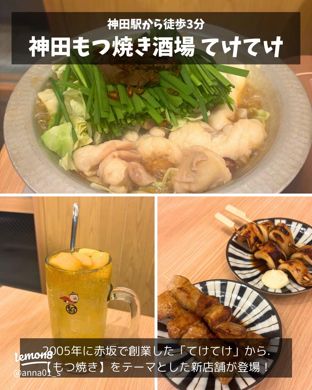 神田で絶品もつ料理が楽しめる居酒屋「てけてけ」。