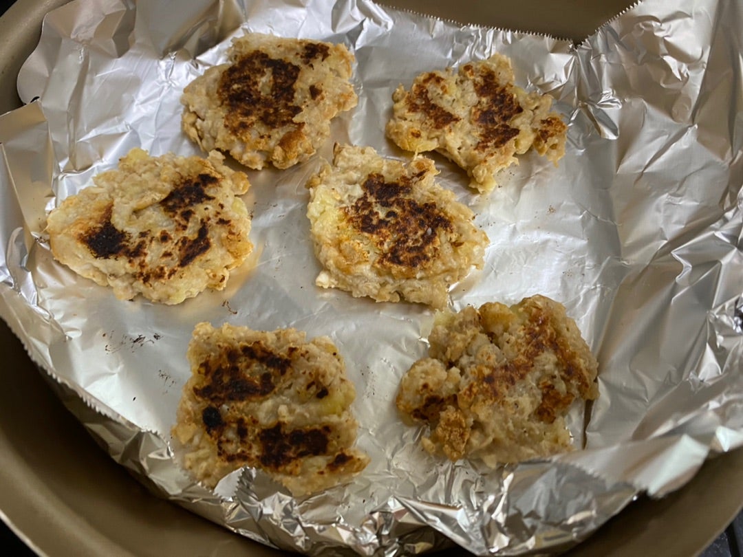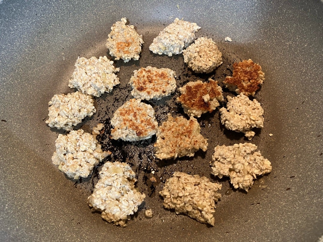 離乳食レシピ手づかみ食べ バナナときな粉のオートミールおやき。