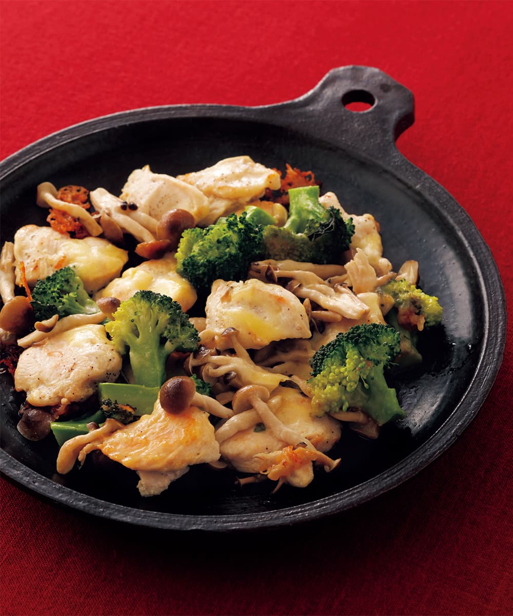 とろ〜りチーズがたまらない! 鶏肉とブロッコリーの辛みそチーズ焼き。