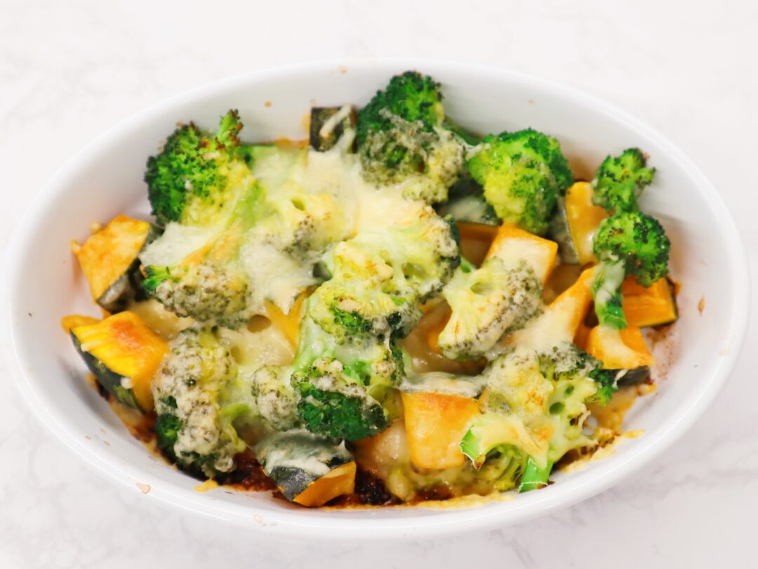 かぼちゃとブロッコリーのこんがりチーズ焼き野菜科学研究会。