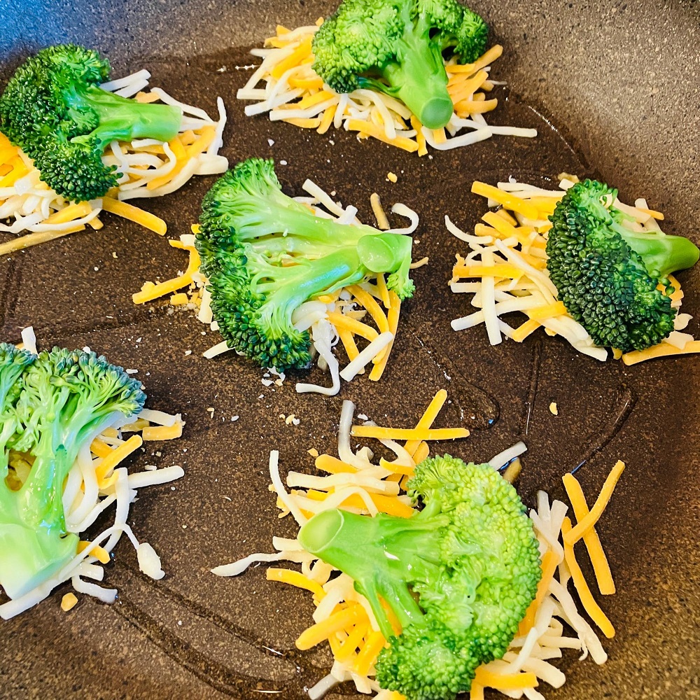 フライパンでブロッコリーのチーズ焼き。