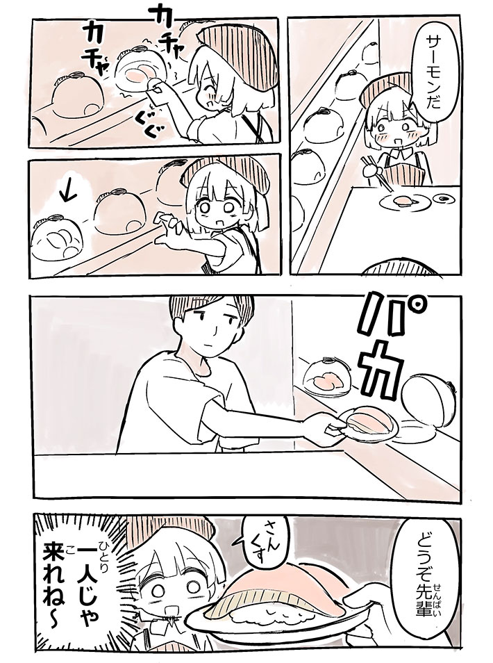 息子のリクエストで 初めて回転寿司「くら寿司」へ 僕自身は ほぼ学生以来 回転している皿の 蓋の開け方が分からず 店員さんに聞く 注文の仕方が分からず店員さんに聞く タッチパネルの 使い方が分からず 店員さんに聞く 醤油皿が無くて 店員さんに聞く くらポンの。