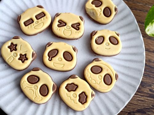 さくさくぱんだ焼き芋ブリュレ ¥183 幸せ見つけた癒しのパンダ🐼🍠 リピート買いしました👏 ほろ苦いカラメルチョコレートに 焼き芋風味のチョコレートが乗った香ばしいビスケット🍪 「焼き芋」じゃなくて「焼き芋ブリュレ」ってところに期待してた❣️ 開封すると、甘い。