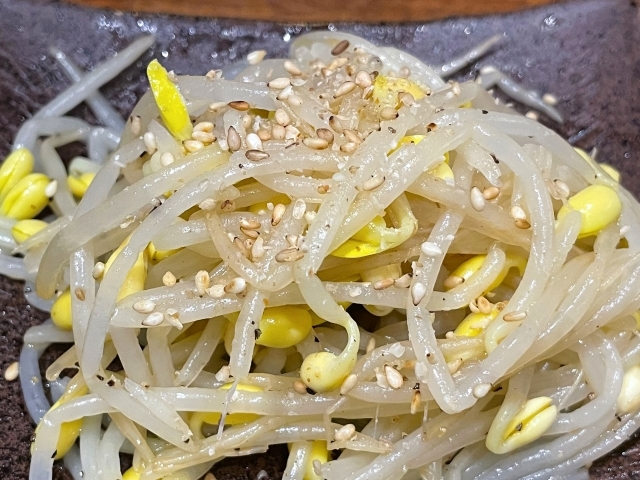 レンジで手軽に!大豆もやしのナムルのレシピ 作り方:白ごはん.com。
