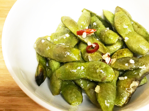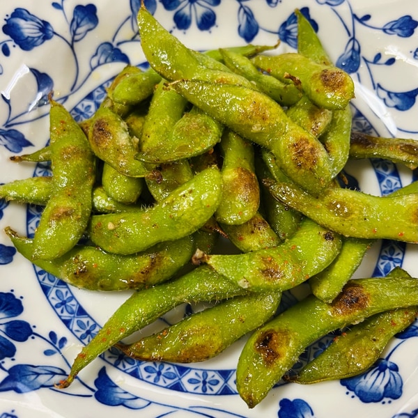 冷凍えだまめで作る簡単おつまみ「やみつき枝豆ペペロンチーノ♫」。