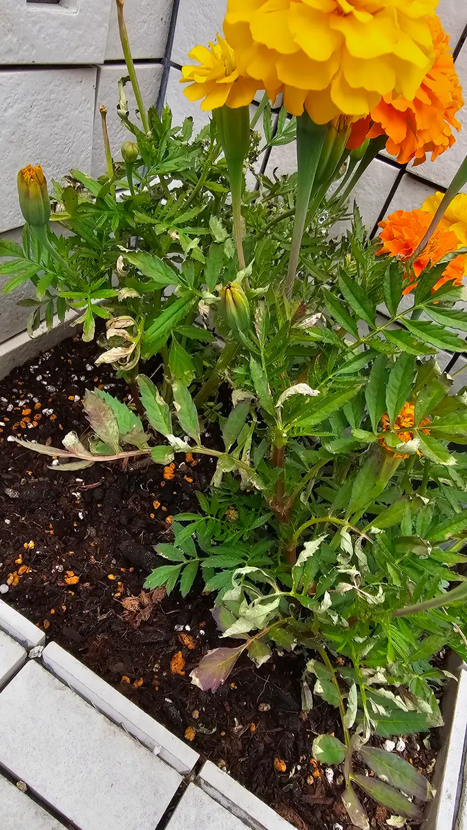 マリーゴールドの葉っぱ、何に食べられてるんだろ? : r gardening。
