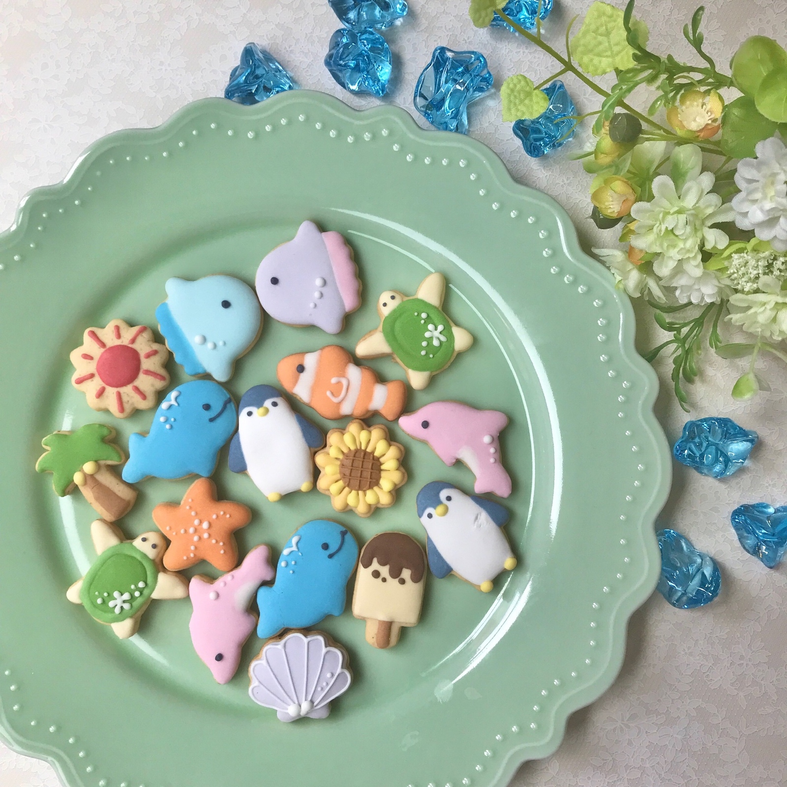 一口サイズ!夏にぴったりアイシングクッキーアイシングクッキーを楽しくマスター!大阪北浜とオンラインのアイシングクッキー教室ソライロシュガ。