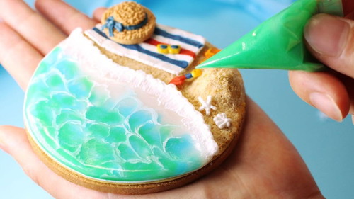波がきらめく美しいビーチを、手作りお菓子で再現したら夏らしさ満点のアイシングクッキーに「めっっちゃきれい」「ほんと芸術」 1 2ねとらぼ。