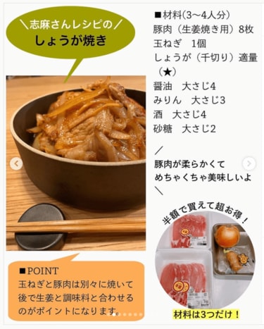 志麻さんのレシピ生姜焼き✨@mayuruiyu さんの投稿をお借りしました 2022.04.20 大好きな伝説の家政婦 志麻さんレシピをご紹介します𓌉◯𓇋 志麻さんのレシピって 特別な調味料を使ってるわけじゃないのに 不思議なくらい素材が生き生きした味になって。