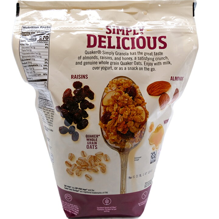 楽天市場 ≪2パックセット≫ QUAKER クエーカー グラノーラ シリアル 978g × 2袋セット お得な大容量! ナチュラル 無添加クウェーカー クェーカー SIMPLY GRANOLA レーズン & アーモンド OATS HONEY RAISINS&ALMONDSオーツ麦 costco コストコ ☆送料無料☆ : 生鮮。