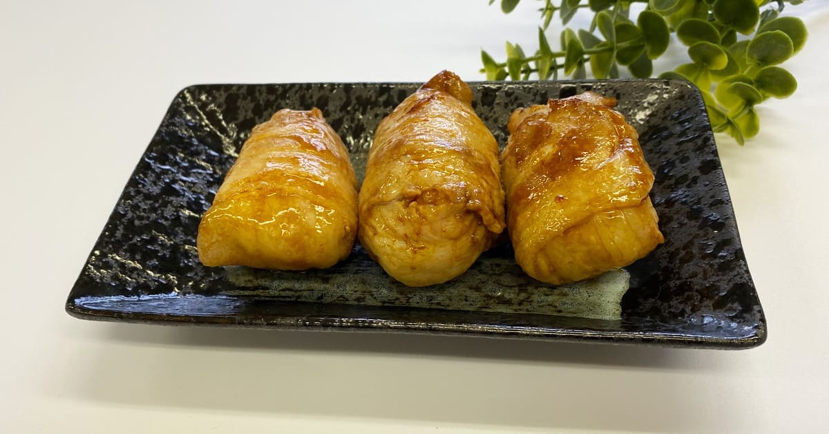 食べ応え抜群!冷めても美味しい余った焼き鳥のタレで肉巻きおにぎり。