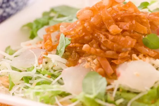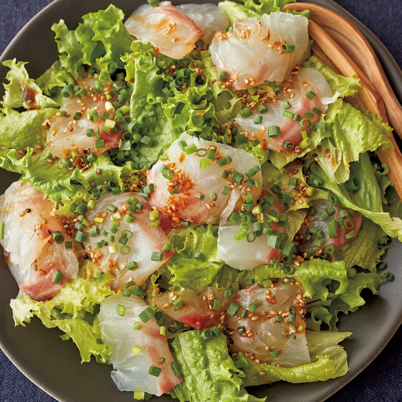 野菜ソムリエのレシピ リーフレタスとお刺身の香味サラダ。