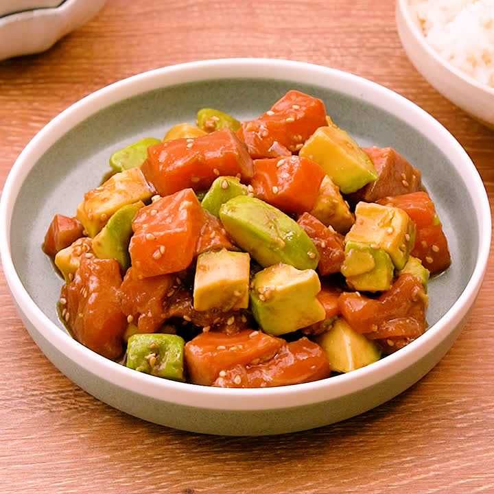 2品献立 サルボ恭子さんの「お刺身のっけ丼とアボカド明太の温豆腐」VERY。