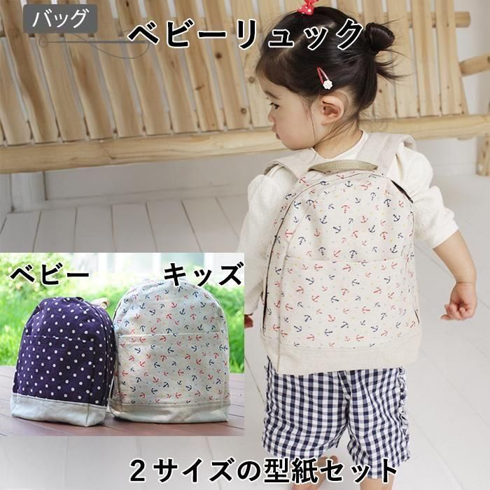 ファスナー付き手作りリュック!ベビーリュック 型紙 作り方 初心者向け S・Mセット。