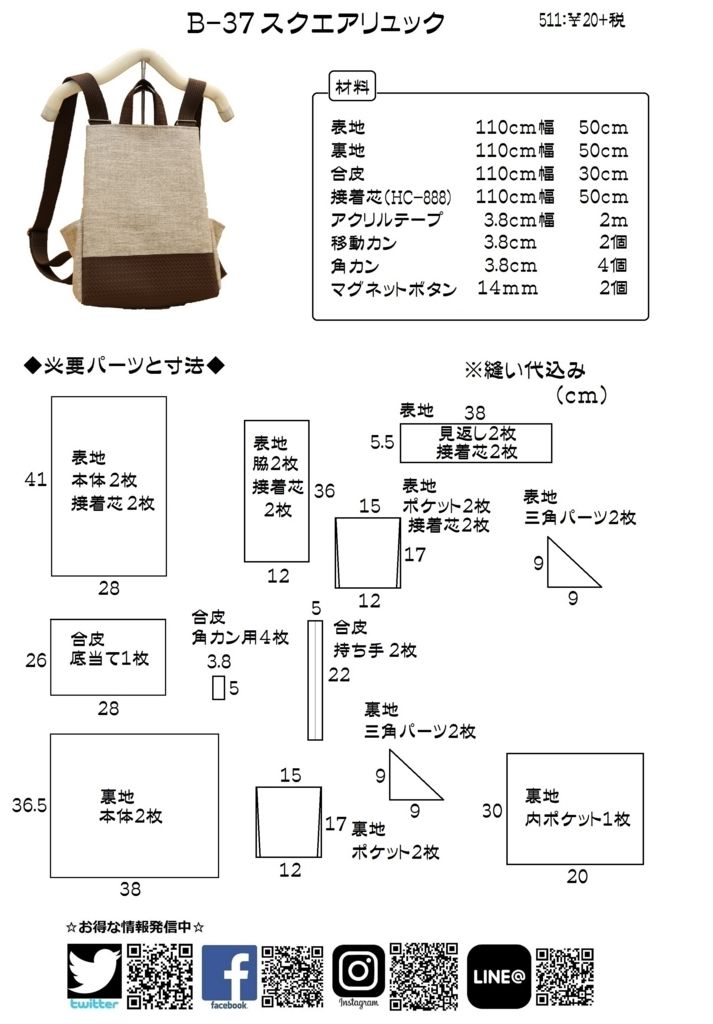 リュックの手作りレシピ・無料型紙手芸用品のパンドラハウス。