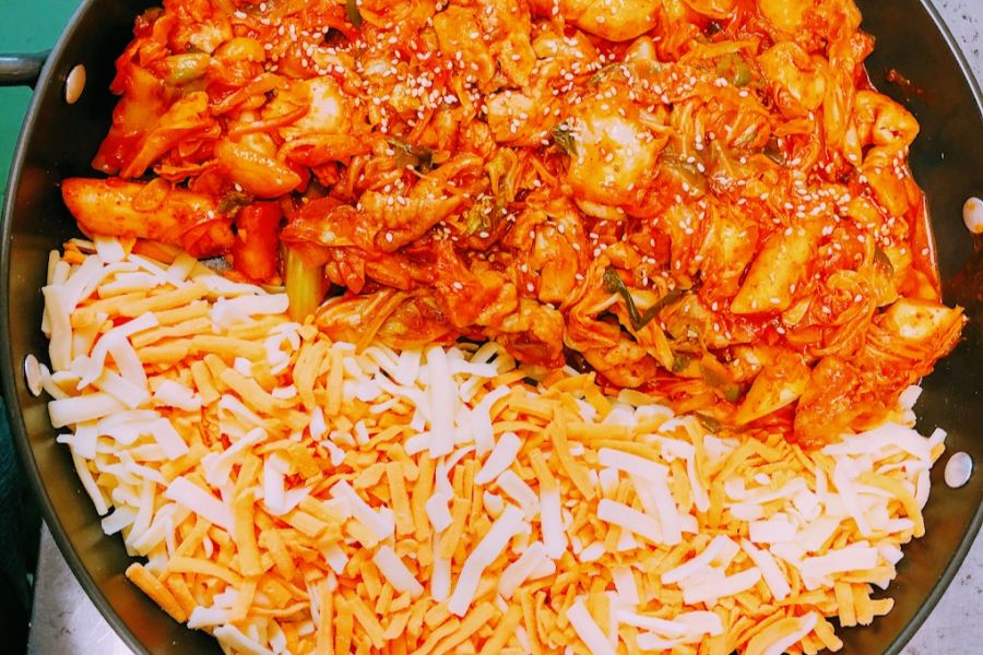 うるま市 トロトロチーズと鶏肉と野菜の甘辛炒めの相性が抜群すぎて、ご飯とお酒が止まらない! 「辛ちゃんチキン」のチーズダッカルビ。号外NET沖縄市・うるま市。