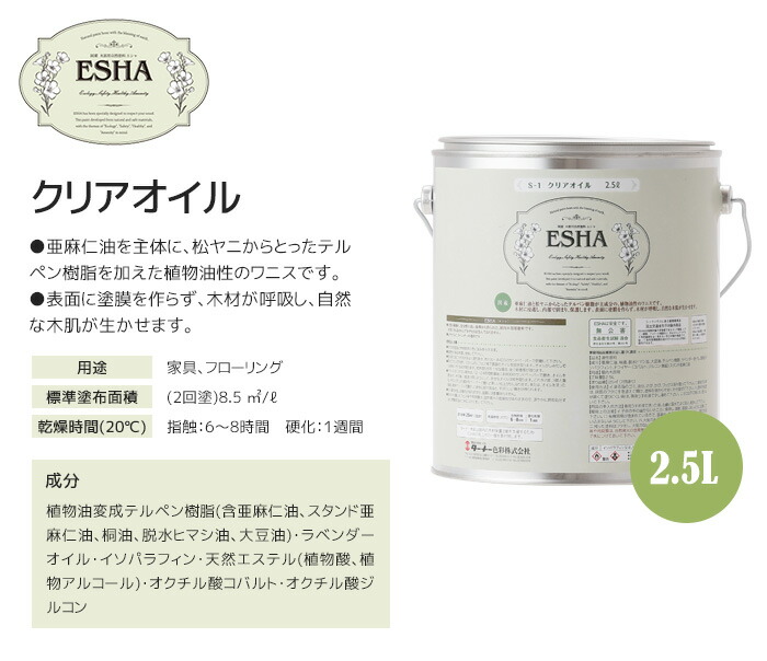 ESHA エシャ クリアオイル 2.5L 約21平米 2回塗り浸透 保護 植物油性。