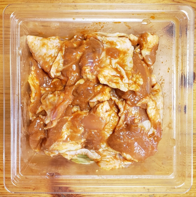 鶏肉の辛味噌だれ オーブンホイル焼きかごよんフライデ。