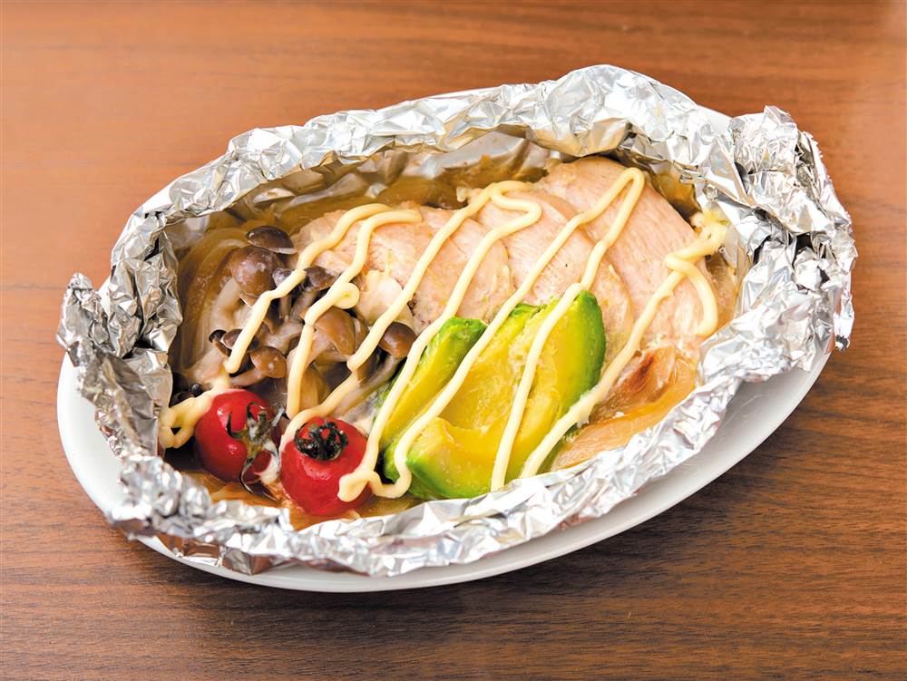 鶏むね肉とぶなしめじのマヨホイル焼き。