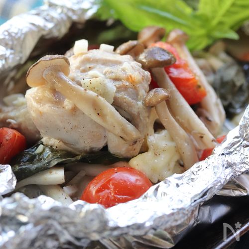 簡単に作れる! 鶏肉としめじのフライパンホイル焼き。