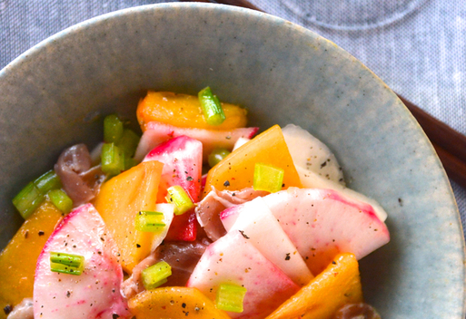 甘×酸がたまらない!柿とかぶのサラダひめくりおつまみレシピ。
