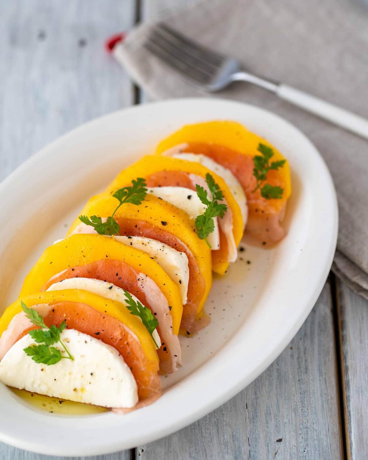 柿とチーズのカプレーゼ 重ねるだけのおしゃれおつまみ!おもてなしにもおすすめ♪macaroni マカロニ。