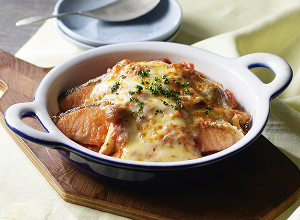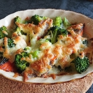 チーズたっぷり!「鮭とブロッコリーのチーズ焼き」。