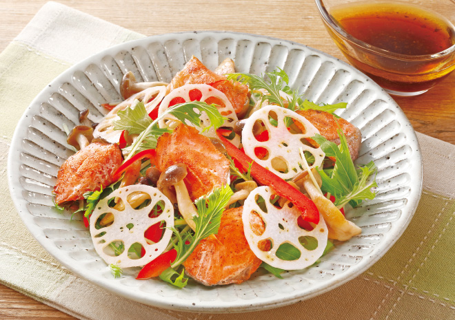 チーズソースで食べる!うま味たっぷり 秋鮭と秋野菜のホットサラダ- BOKUの簡単ンまい~ブログ。