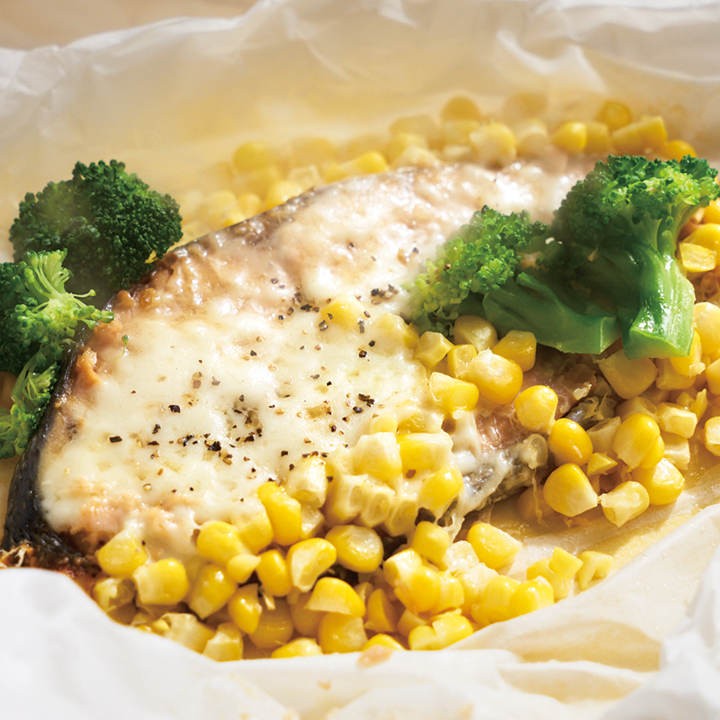 銀鮭ブロッコリーのチーズ焼き中華味。