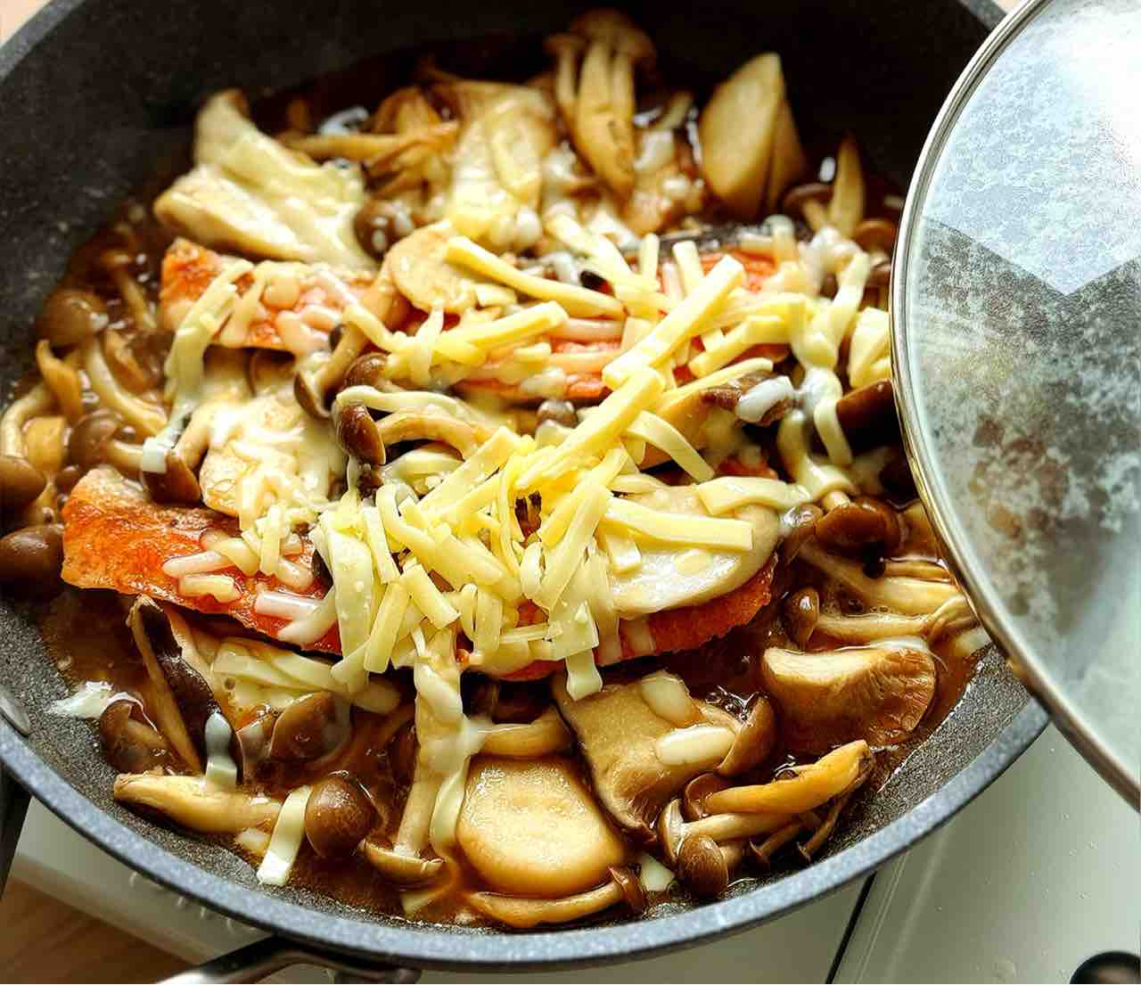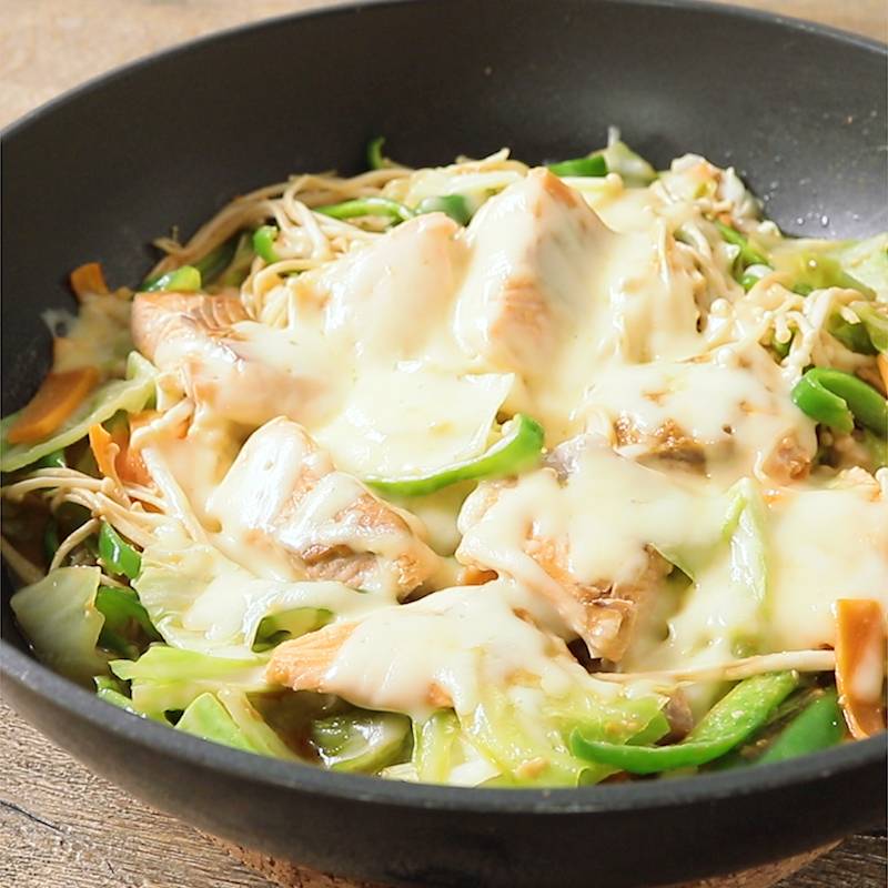 フライパンごと とろーりチーズのちゃんちゃん焼き。