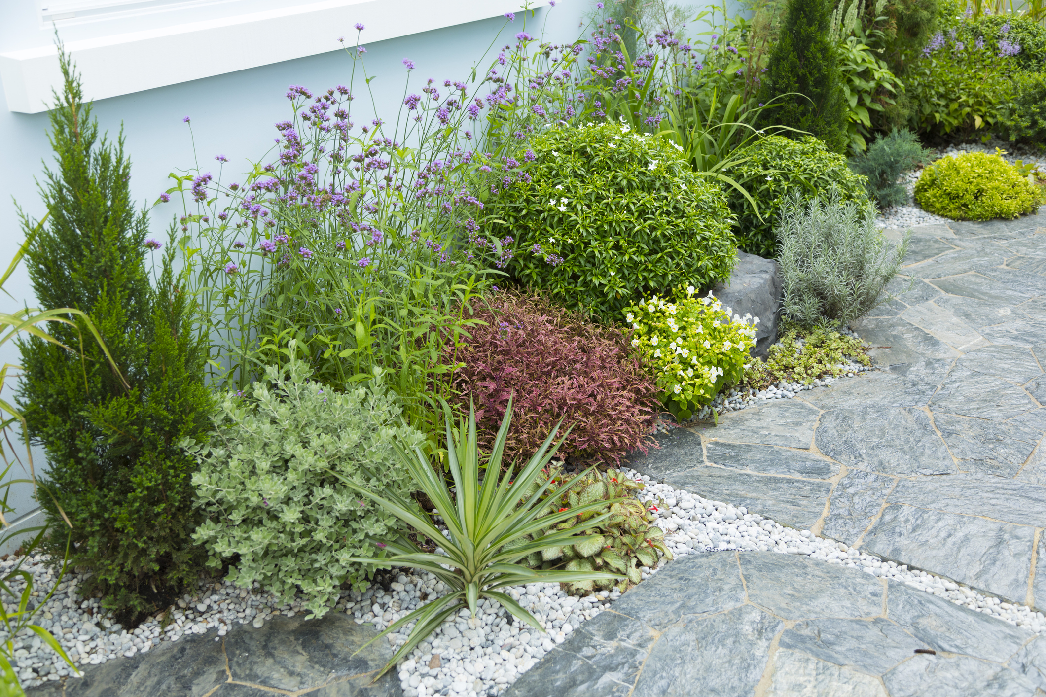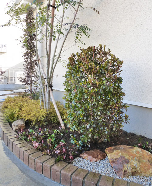 山田造園松戸市 カラーリーフが美しい低木を中心におしゃれ にまとめた玄関周りの花壇«施工例 造園・作庭 «エクステリア・造園施工なら千葉県松戸市の有限会社山田造園。