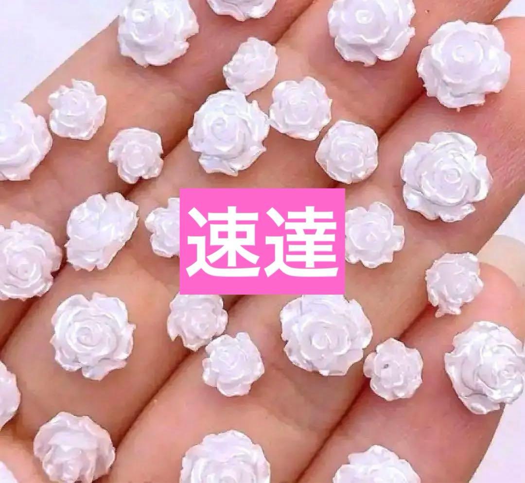 ネイルパーツ 花 ネイルアート 立体 お花 ブリオン 半円パール ジュエリーパーツ ネイルデコパーツ ビーズ フラワー パーツ ホワイト 金属粒 3D ネイルアートデコレーションhananoki。